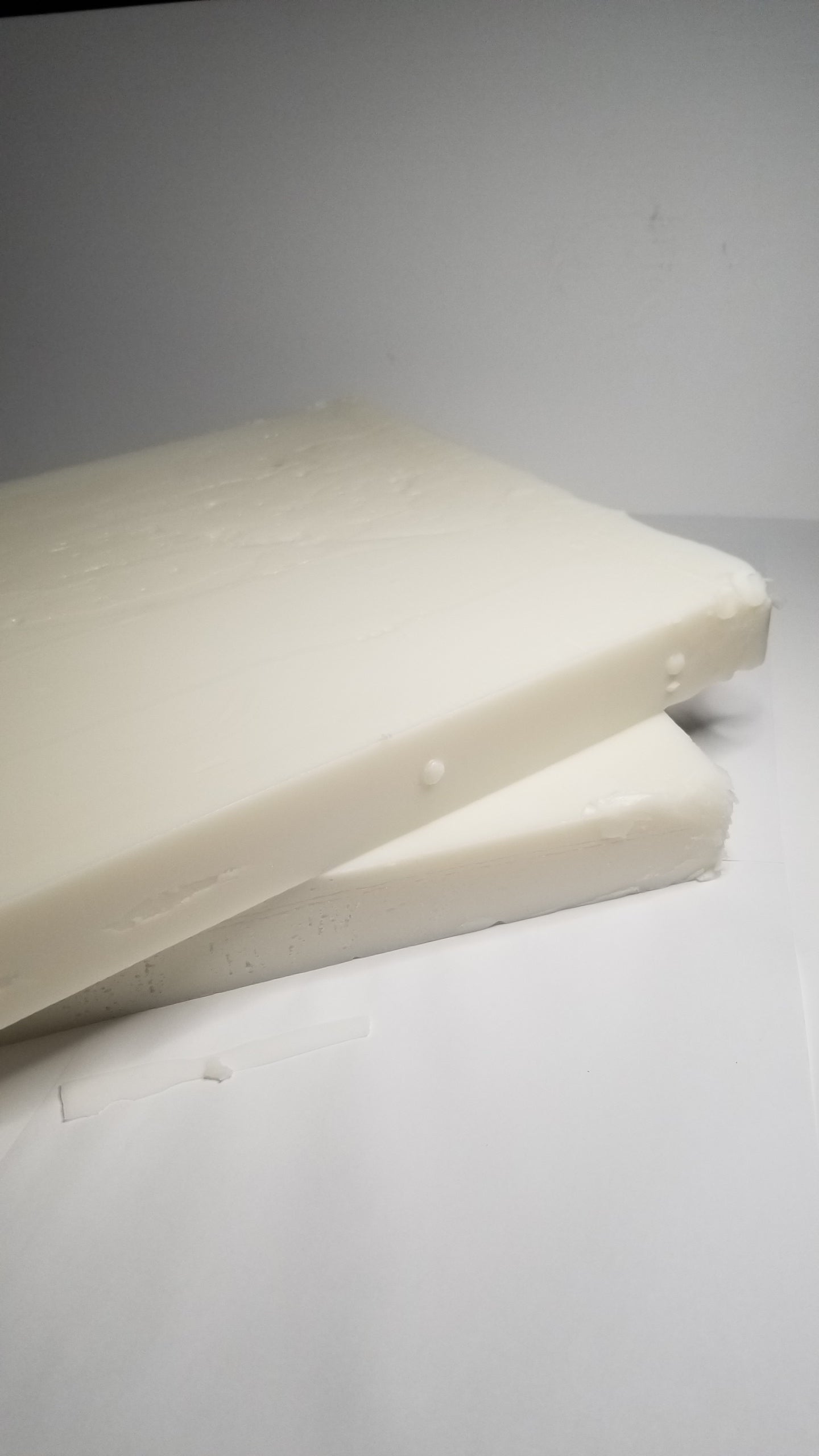 AccuSoy #10, All Natural Soy Container Blend, is a smooth all natural blend of 100% soy wax ingredients. It has excellent color retention, jar adhesion, hot and cold scent throw, and is clean burning. No additives are required. It is blended to eliminate frosting of colored candle and adheres very well to the glass. Pours with a smooth surface. It has very long burn times. As with all natural products, soy blends can vary slightly from batch to batch. This wax has minute amount of paraffin, food grade paraffin.